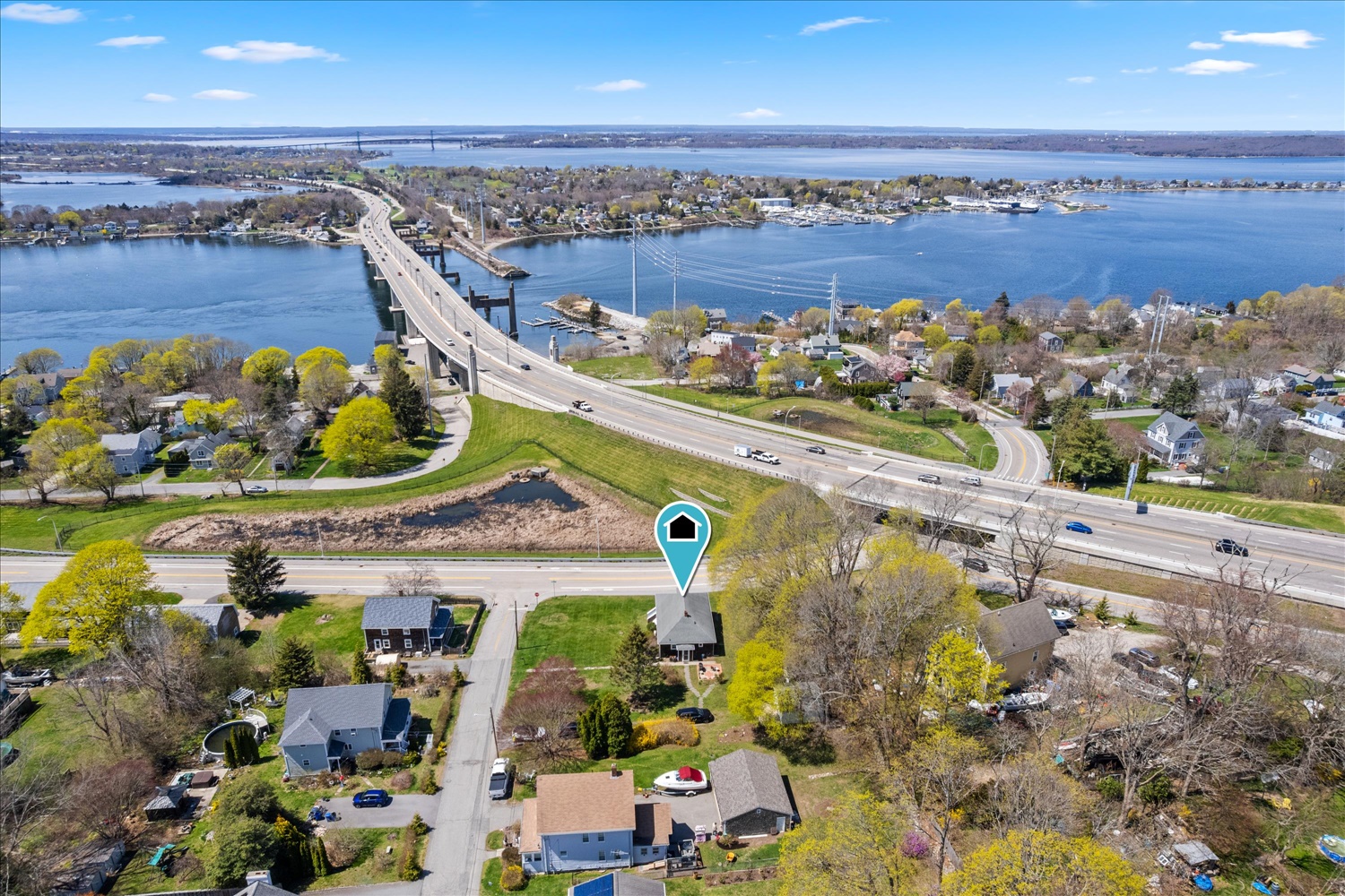 Charming bungalow (circa 1920) offering easy one level living on spacious half-acre lot in Tiverton, with distant water views, conveniently located near Route 24 and the Sakonnet River Bridge. This well-maintained 2-bedroom home features wood floors, numerous updates, many original features, and a covered porch. Two car garage plus additional garage.